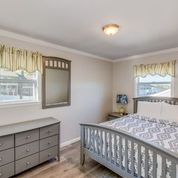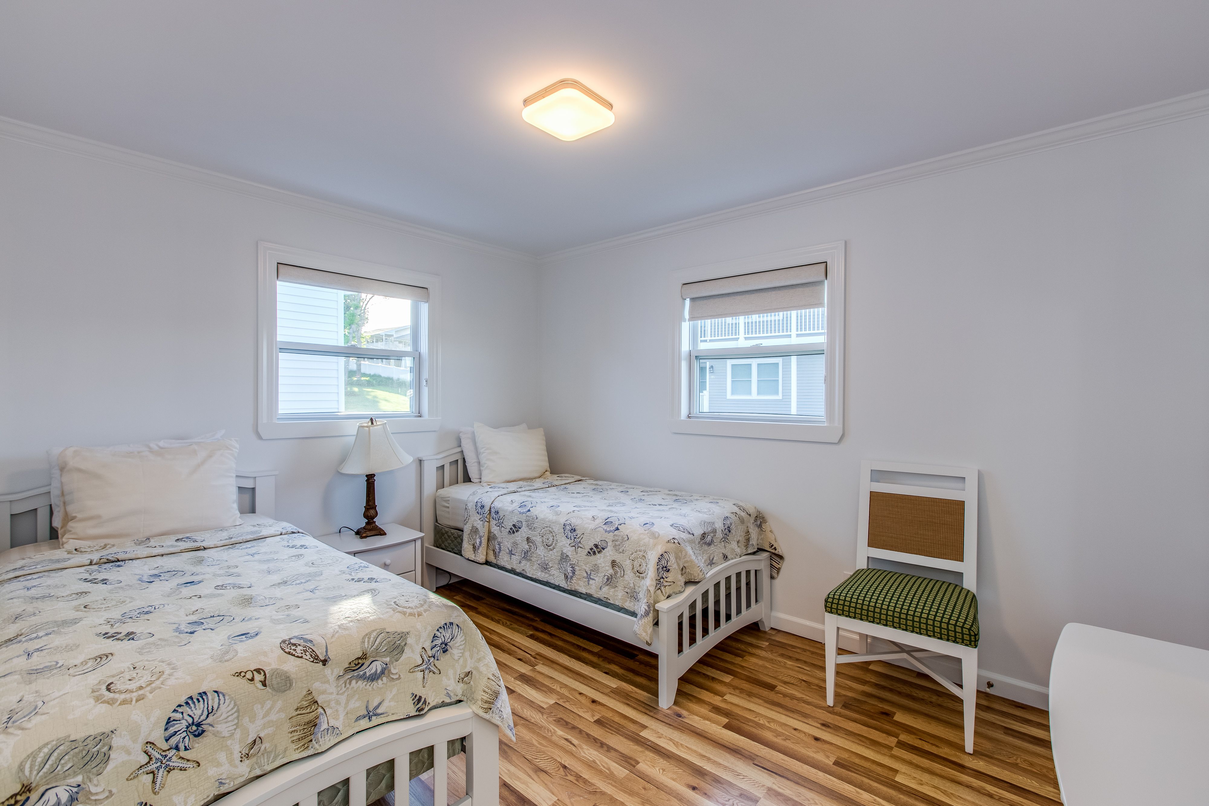 This bungalow has two bedrooms , 1 Queen bed. 2 Twin beds, sofa bed, living room, full kitchen, full bathroom, central air.